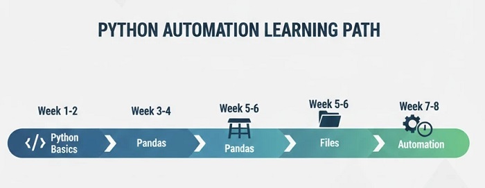 Python data automation skills change your trajectory. Excel power users earn $45,000-$65,000 typically. Add Python automation and the range jumps to $65,000-$95,000. Senior roles reach $110,000+. Beyond salary, you unlock new positions: Data Analyst, BI Analyst, Automation Specialist — roles that weren’t accessible with Excel alone.